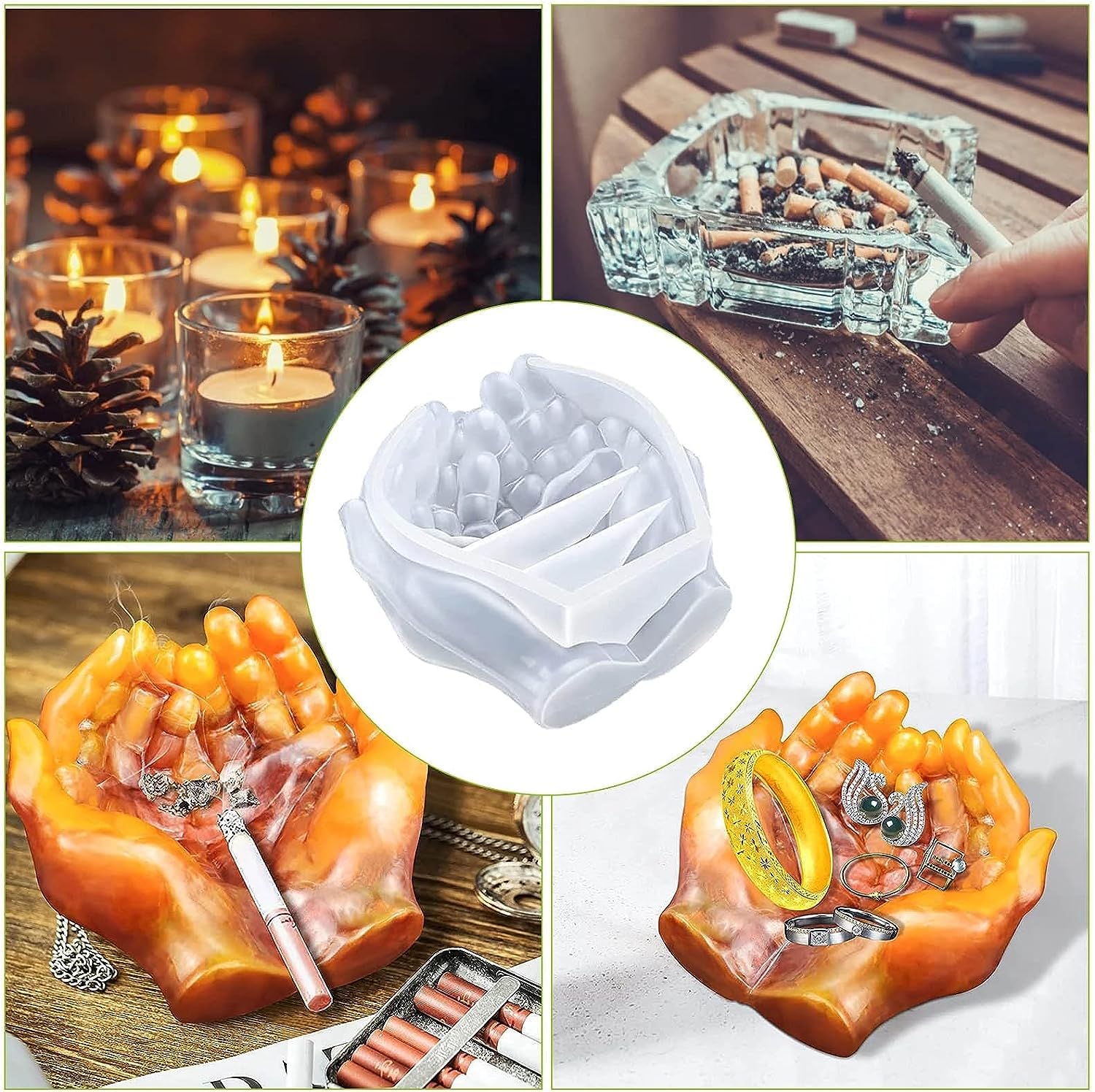 AAI Planet 3D Hand Shape Silicone Epoxy Deep Casting Tray I Ashtray Mold for Homemade Ornament DIY Art Crafts Jewelry Storage Box Ring Trinket Container Home Office Table Decorations