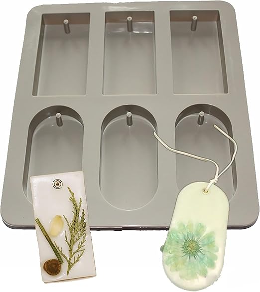 Aai Planet Aromatherapy Wax Mold I Silicone Fondant Mould with Hanging Hole I Dried Flowers Resin Soap Clay Craft Jewelry Making Molds DIY Pendant Bookmark Necklace I Grey - 6 Cavity (2 Different)