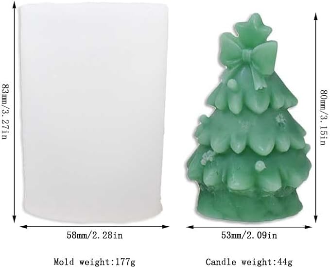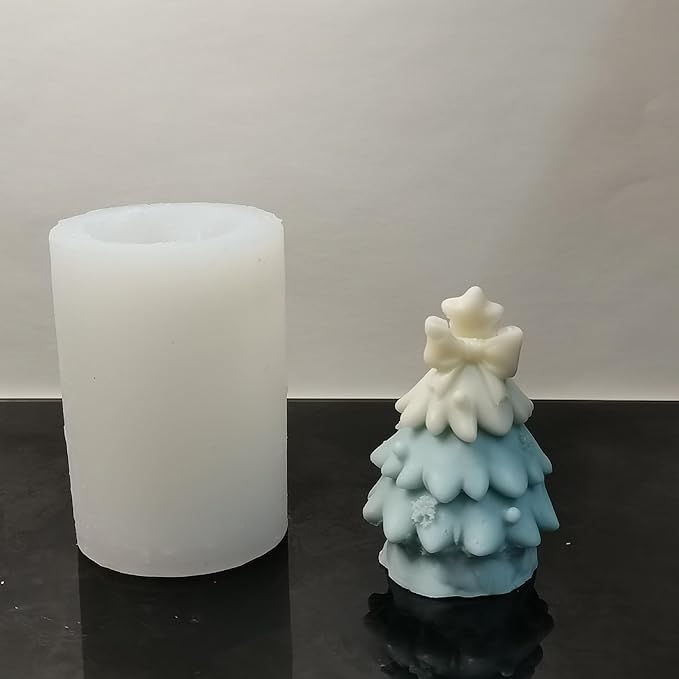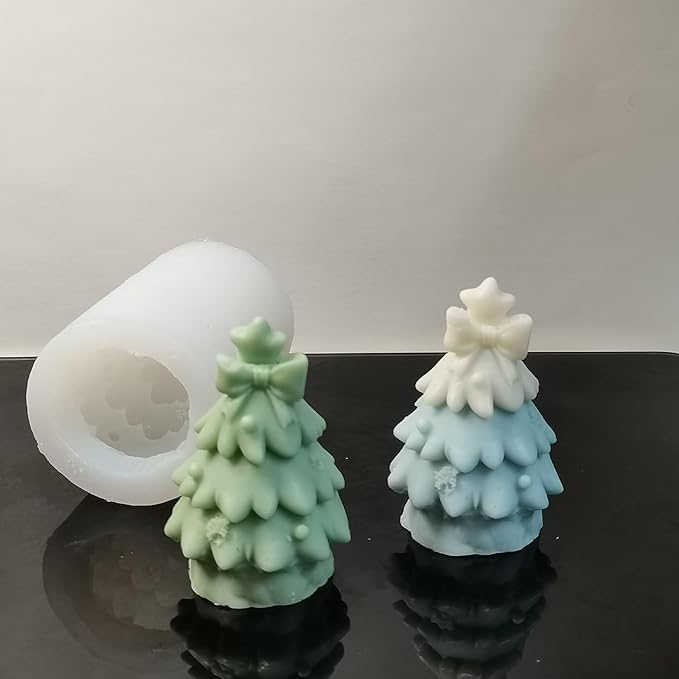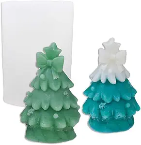 AAI Planet Christmas Tree Candle Mold I 3D Fondant Silicone Scented Wax Mould I Succulent Molds | Handmade Candles Making | for Mousse Dessert Soap Cake DIY Decorating (Christmas Tree Mold Bow)