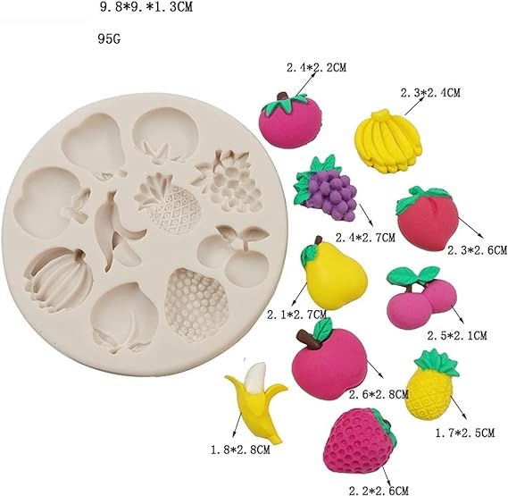 - Package Contents: Cupcake Mould I Material: Silicone I Color: - Random Color I Shape: Mini Fruits I Size: As per Images I High quality: Made of 100 percent food grade silicone. I it is a meaningful gift for family and friends. I Easy to use and clean, Hand washing recommended I fun and interesting, can well cater to your artistic tastes I Also great for casting resin crafts, art craft, crystal gift, soap making, clay, etc.