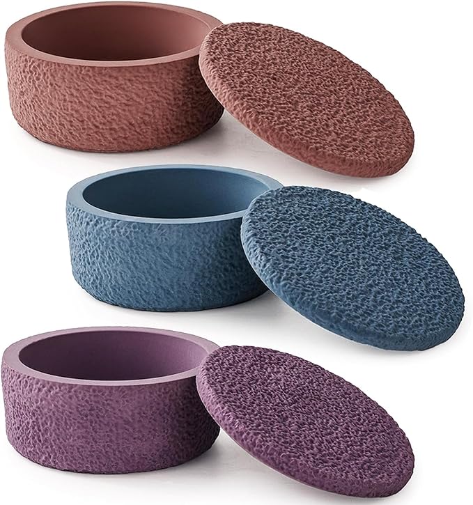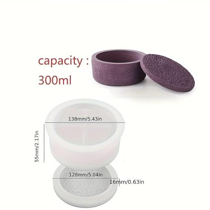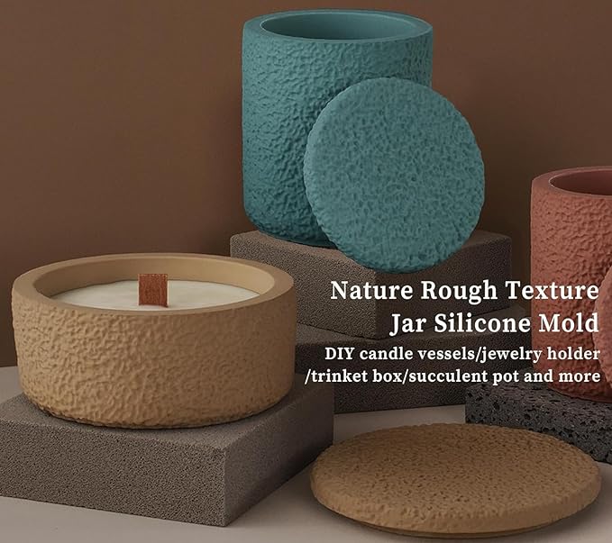 - The molds feature nature rough texture on the body and top, let the finish product become more unique and artistic. There comes with a lid for better storage, keep your candle or trinket from dust, water or others.