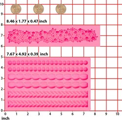 What you get: the package comes with 2 pieces 3D pearl silicone molds, useful tools for you to use in kitchen, you can have fun with your friends or family when baking, help bring your cake or cupcake decorating skills to a different levelNice design: creative design in rope and bead shape, the dough is simply pressed into the mold and comes out completely, without sticking, the mold makes a very crisp and distint imprint in the dough, and very easily creates good looking crustApplications: 3D diy silicone mould and round pearls bubbles moulds, appropriate for pie, sugarpaste, rolled fondant, gumpaste, cake decorating, chocolate etc.Material: made of quality silicone material, can be applied for a long time, can easily produce nice flower patterns, and they won't crack, easy to wash and cleanSize information: 2 pieces 3D pearl silicone cake molds are in 2 different sizes, one measures approx. 7.67 x 4.92 x 0.39 inch and the other measures approx. 8.46 x 1.77 x 0.47 inch