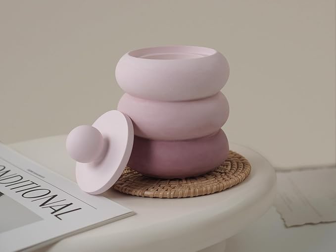 AAI planet Storage Box with Lid Resin Mold I Concrete Round 3 Ring Bottle Vase Silicone Casting Jar Mould I Succulent Molds for DIY Handmade Candle Holder Jewelry Trinket Container Flowers Pot Décor