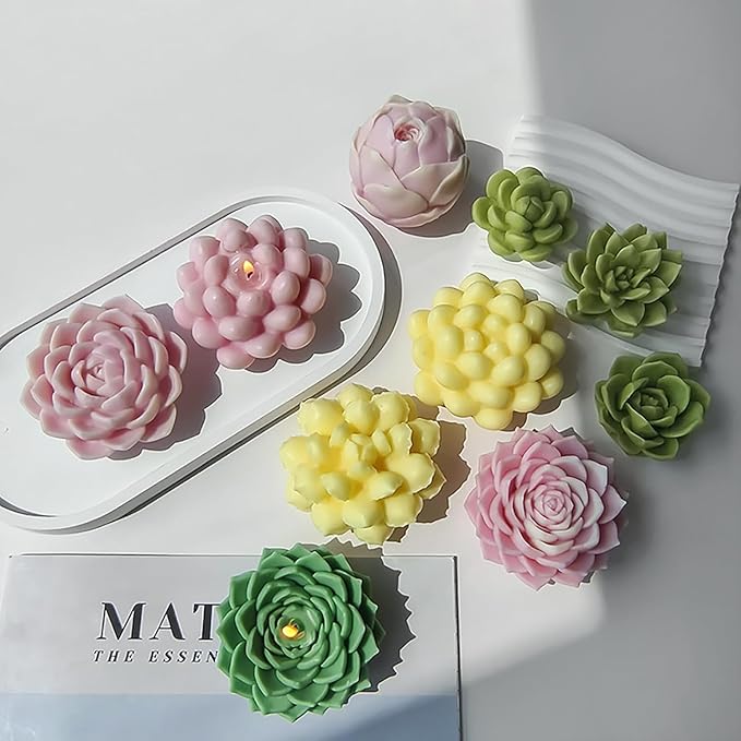 - Package Contents: Candle Mold I Material: Silicone I Color: Multicolor I Shape: Succulent Flower Shape I Size: As per Images I it is a meaningful gift for family and friends. | Easy to use and clean, Hand washing recommended I Flexible and reusable I Suitable for making resin art projects like desktop decoration, handmade soap, aromatherapy, mousse, cake, candle, soap, and candy.