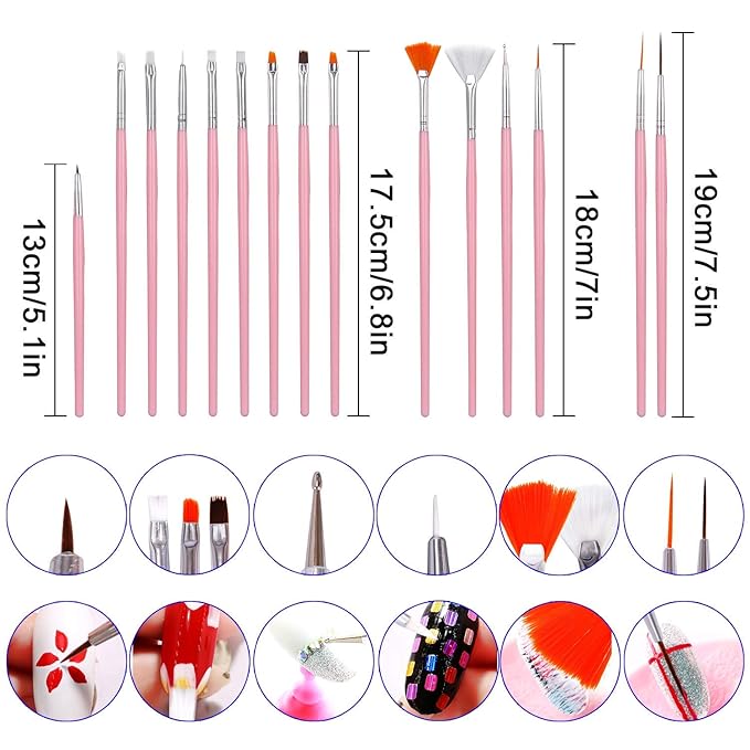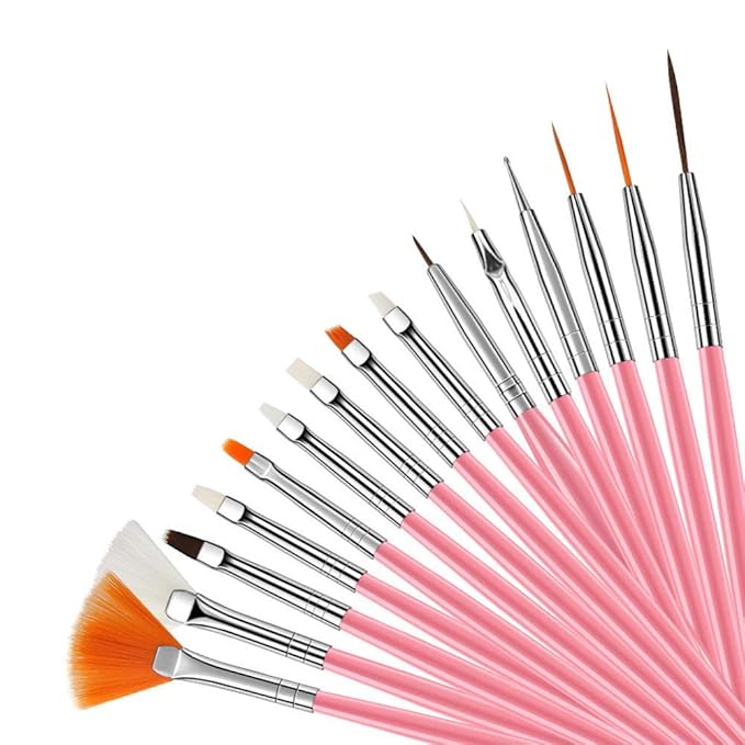Aai Planet UV Gel Acrylic Nail Painting Brushes/Drawing Pen/Nail Art Design Painting Tool Pen Polish Nail Brush Set Of - 15 Pieces - Pink