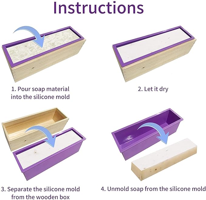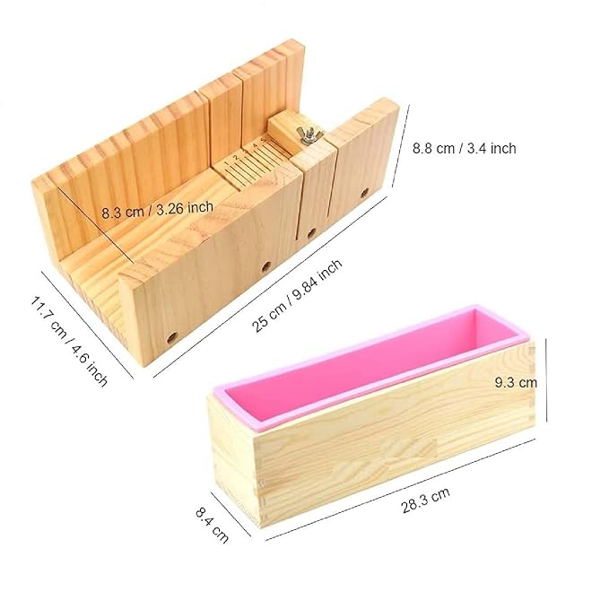 Aai Planet Wooden Soap Loaf Cutter Mold and Soap Cutter Set + 1 pc Rectangle Silicone Mold with Wood Box + 1 pc Straight Cutter + 1 pc Wavy Cutter (5 Pcs Set)