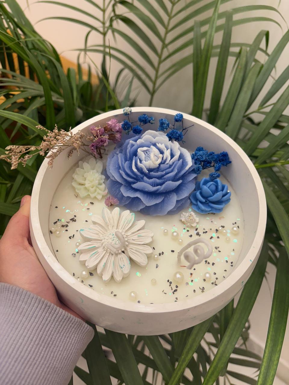 AAI Planet Blue Blossom Serenity Candle creates a calm, elegant ambiance with delicate blue floral wax art and a soothing fragrance. Handcrafted for relaxation and décor, it’s perfect for stress relief, gifting, meditation, or enhancing any modern living space.