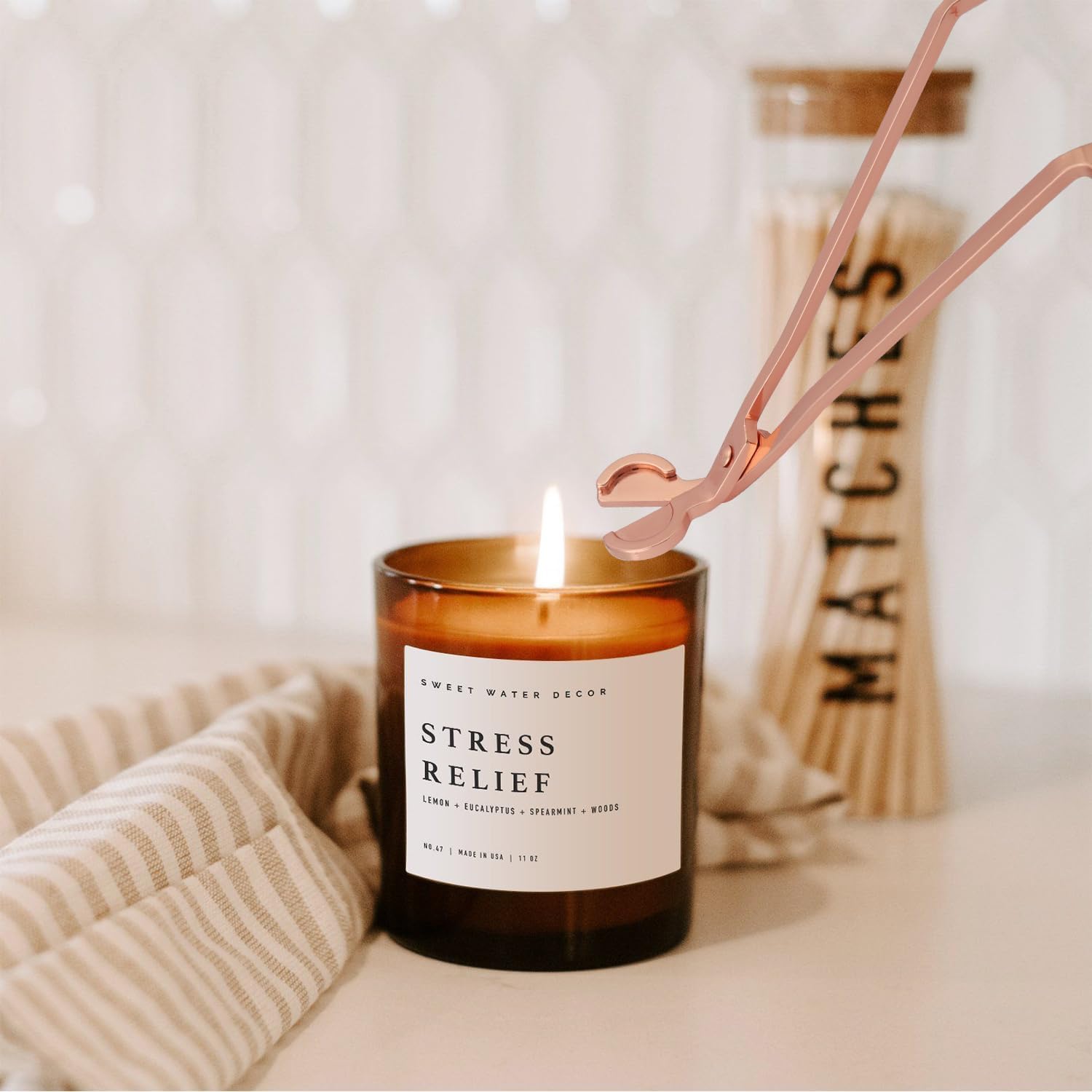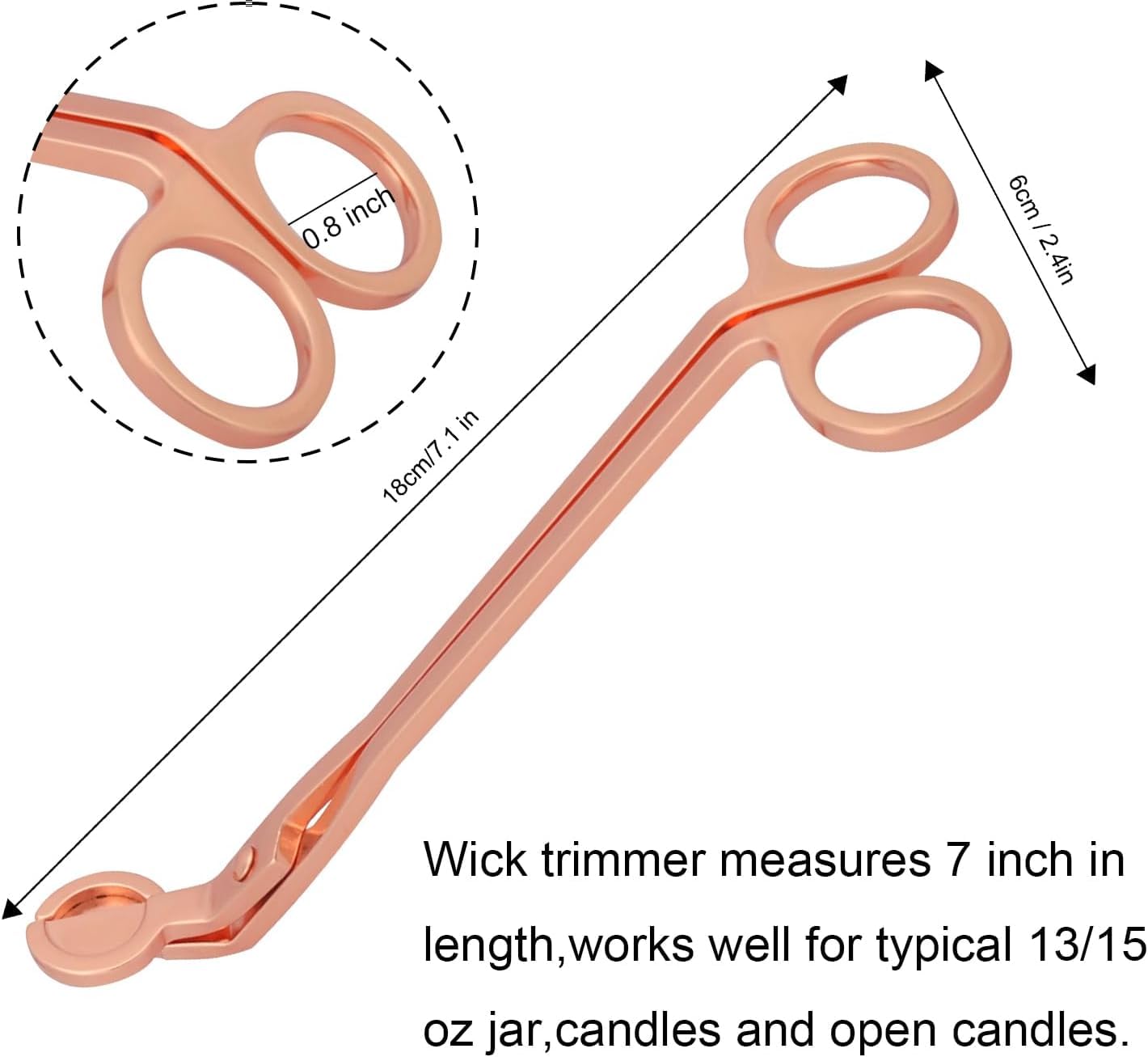 AAI Planet Rose Gold Wick Trimmer for Candle ensures clean, even burns every time. Crafted from durable stainless steel with a long handle and angled cutting tray to trim wicks safely, reduce soot, and extend candle life.
