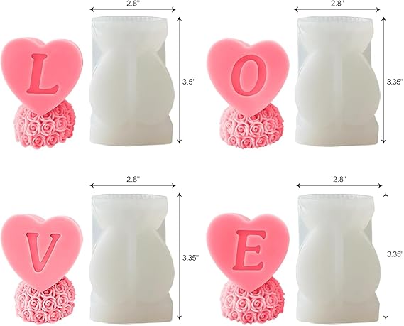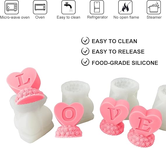 - Rose Heart Silicone Mold is designed with four different letters and heart patterns, with exquisite rose flowers and cute heart shapes, practical for many crafts making or baking.