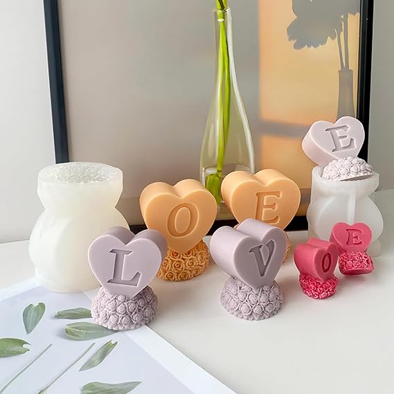 Aai Planet Valentine’s Day Series Candle Mold I 3D L O V E Heart Shape Rose Flower Silicone Scented Mould I for DIY Handmade Ornament Chocolate Aromatherapy Soap Resin Art Craft Home Décor (Big)